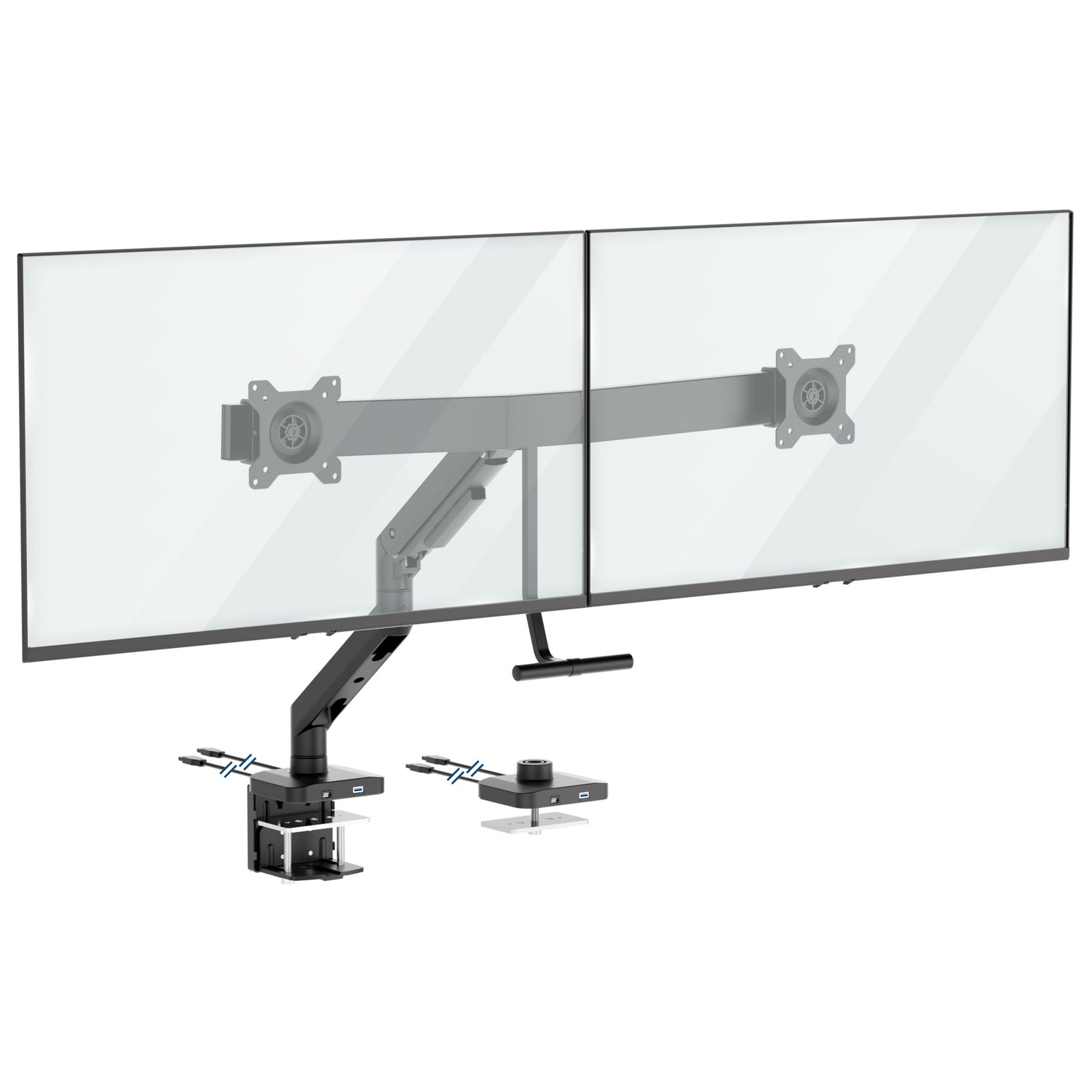 Mount It products are designed for quick and frustration free installation. Dual Monitor Mount with Gas Spring Arm and Crossbar includes all required hardware, clearly written instructions, and a step by step guide specific to this product. You can also follow this product specific installation video below or on our YouTube channel for a complete walk through of the install process.