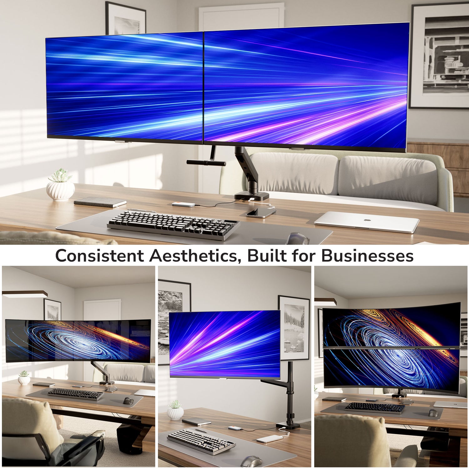 Dual Monitor Mount with Gas Spring Arm and Crossbar - Black is backordered and will ship as soon as it is back in stock.