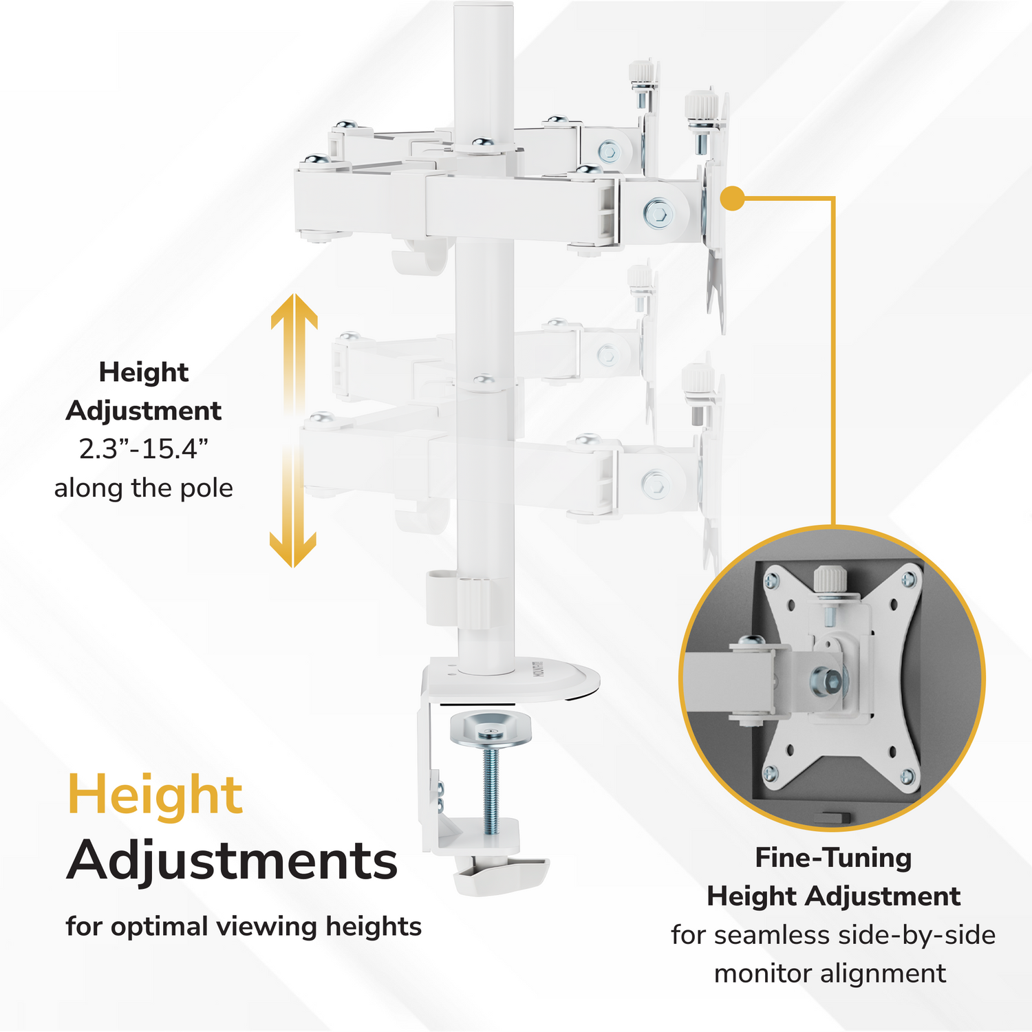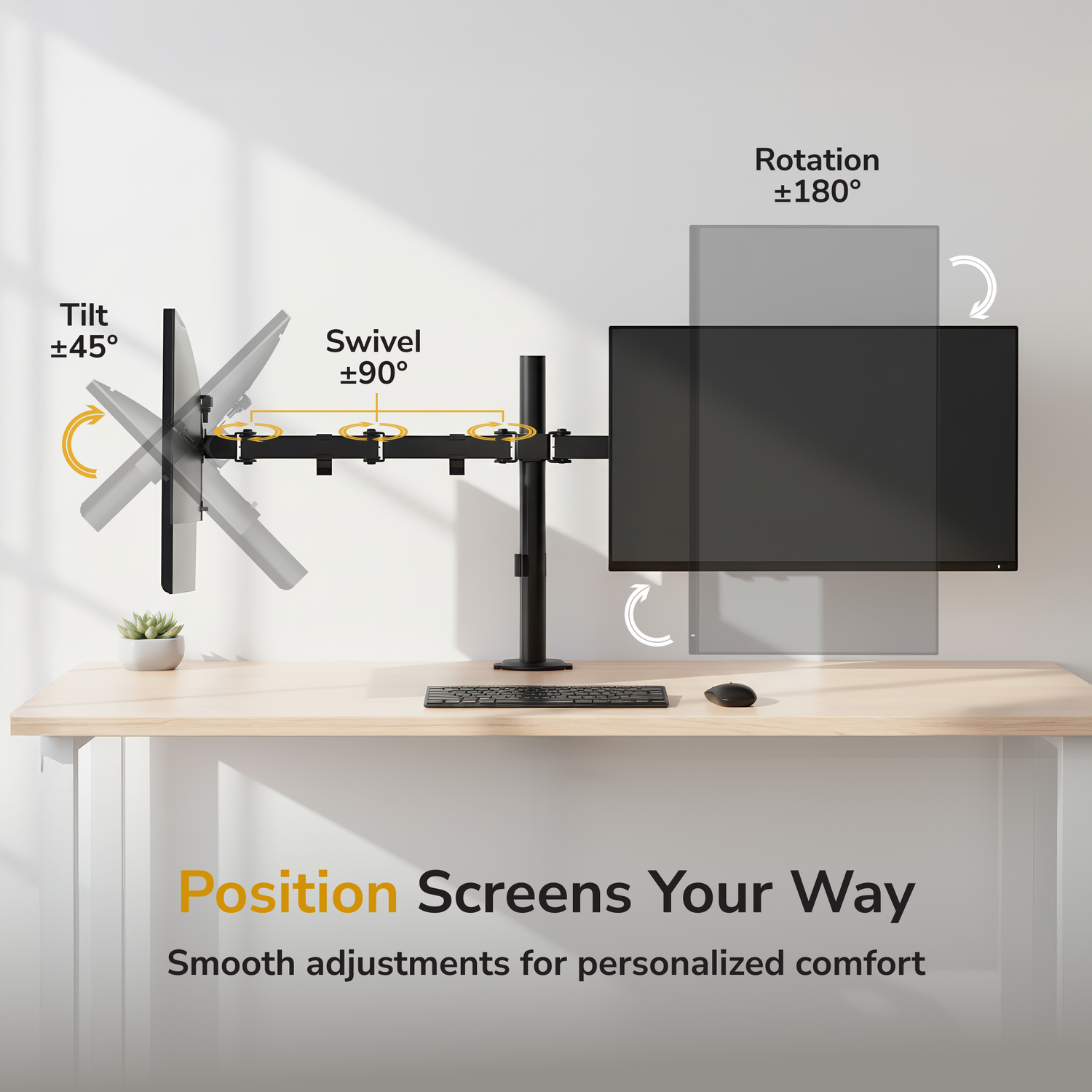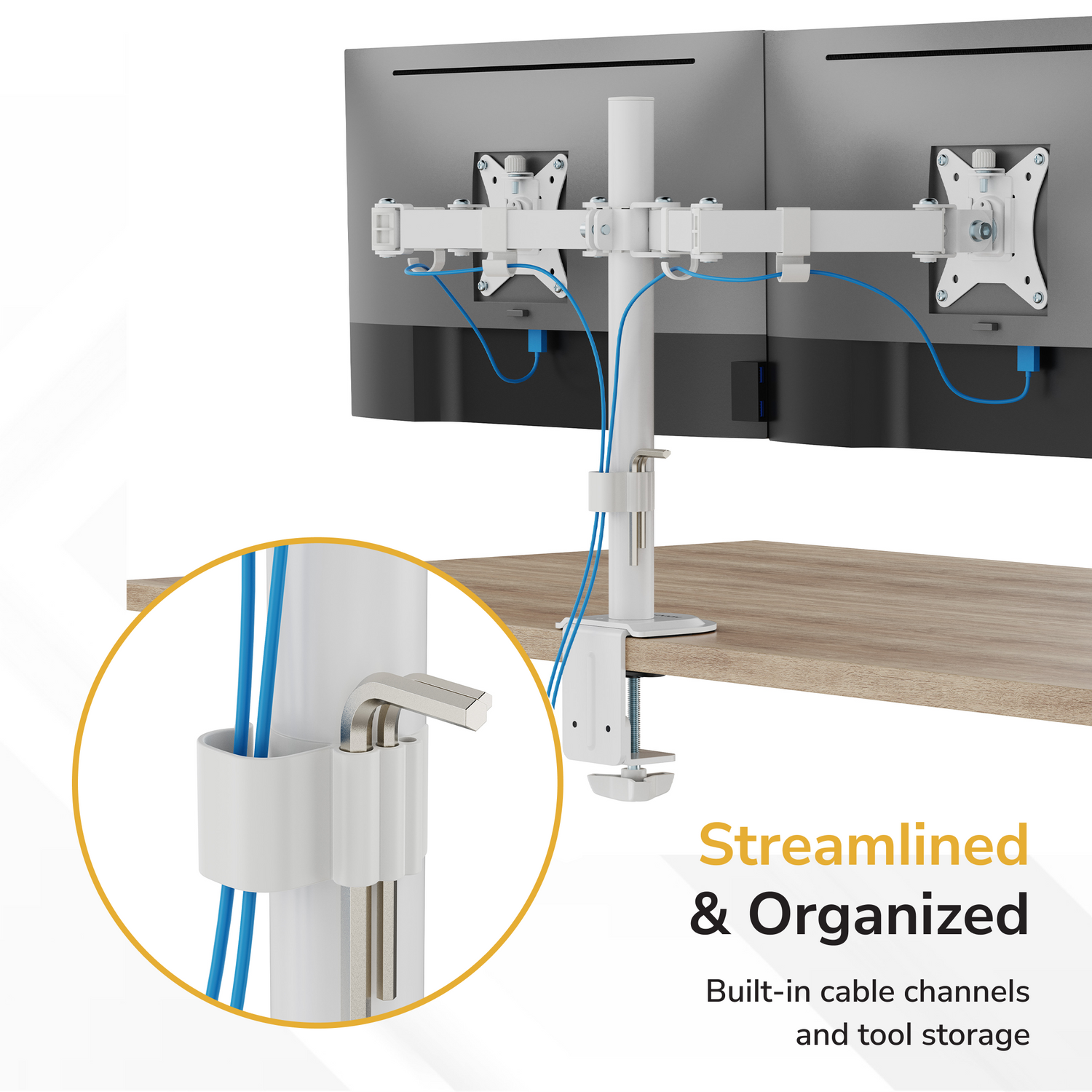 Mount-It products are designed for quick and frustration free installation. Full Motion Dual Monitor Desk Mount includes all required hardware, clearly written instructions, and a step by step guide specific to this product.
