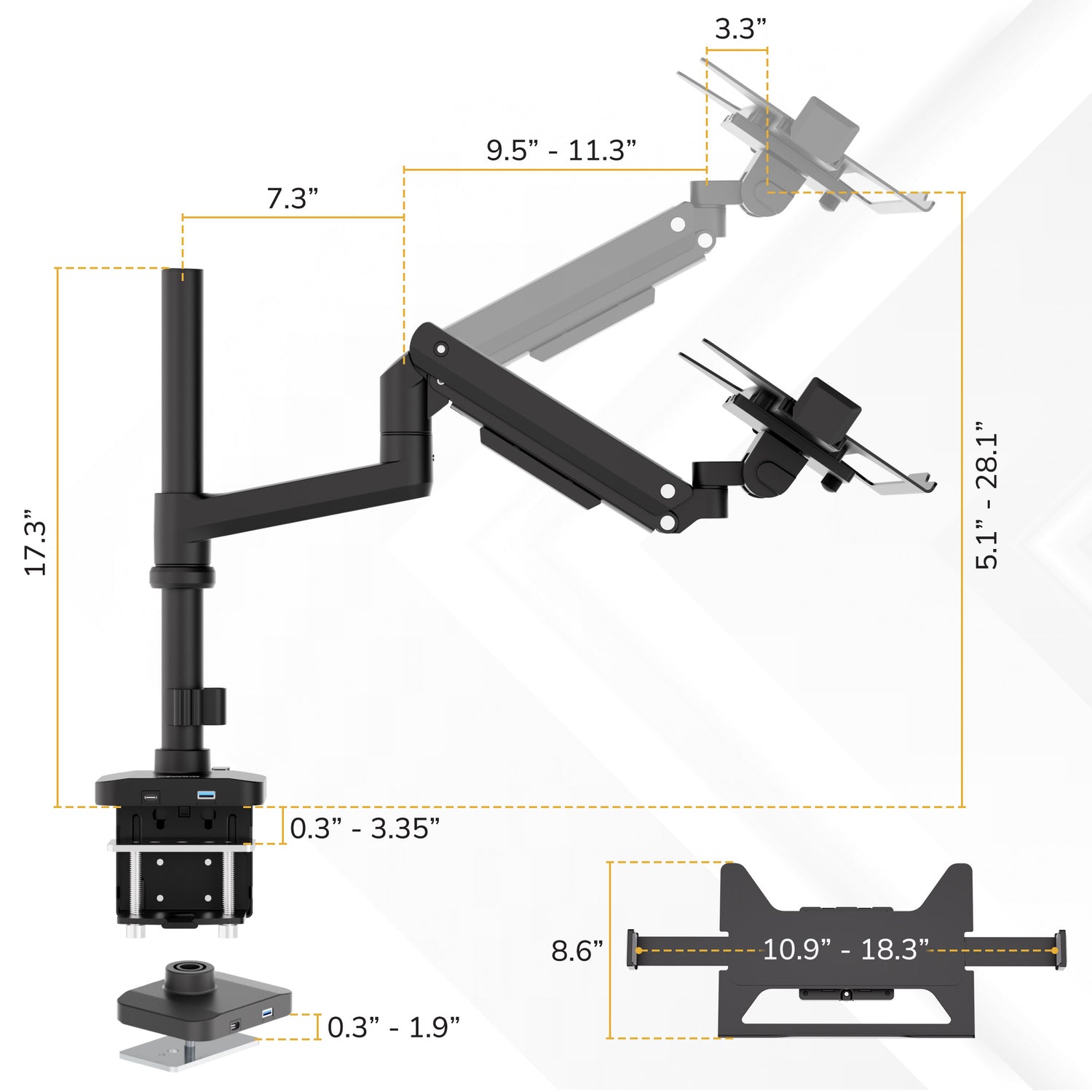 Mount It products are designed for quick and frustration free installation. Laptop Mount with Pole and Gas Spring Arm includes all required hardware, clearly written instructions, and a step by step guide specific to this product. You can also follow this product specific installation video below or on our YouTube channel for a complete walk through of the install process.