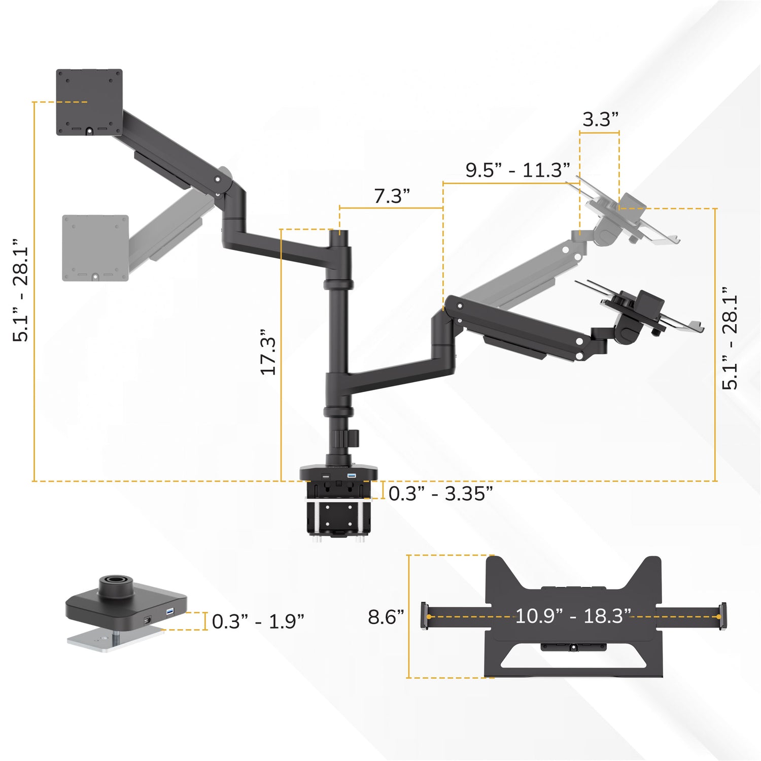 Mount It products are designed for quick and frustration free installation. Heavy-Duty Monitor and Laptop Mount with Pole and Gas Spring Arms includes all required hardware, clearly written instructions, and a step by step guide specific to this product. You can also follow this product specific installation video below or on our YouTube channel for a complete walk through of the install process.