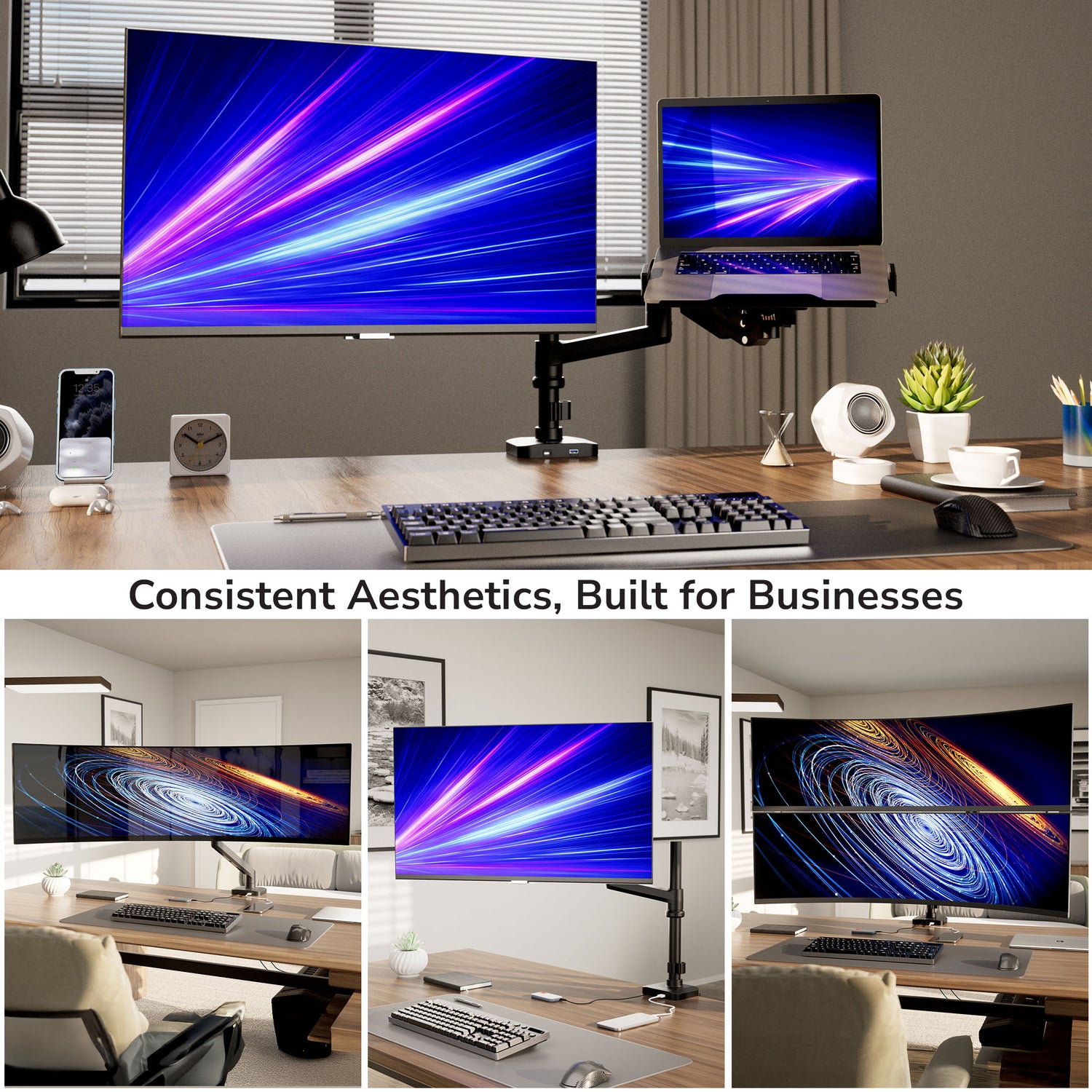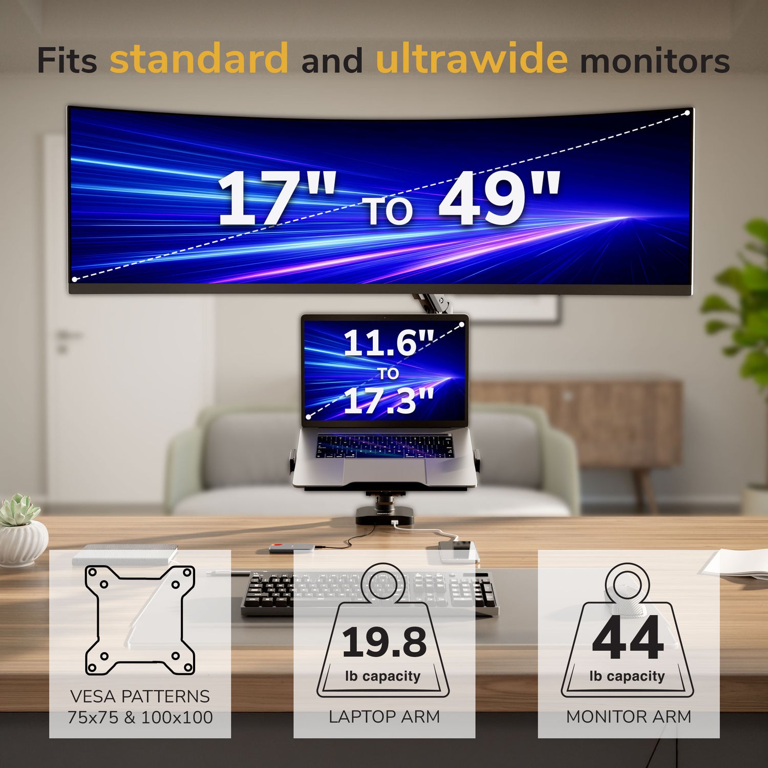 Mount-It! Heavy-Duty Monitor and Laptop Mount with Pole and Gas Spring Arms for monitors up to 49" Ultrawide | MI-12008