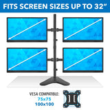 Mount-It products are designed for quick and frustration free installation. Quad Monitor Desk Stand includes all required hardware, clearly written instructions, and a step by step guide specific to this product.