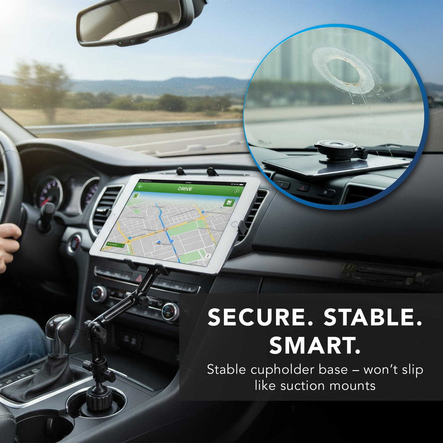 The MI-7320 is the ideal ELD table mount solution for any commercial truck or fleet. This universal tablet car mount allows you to easily access your tablet in your vehicle. The double-jointed extension arm can be adjusted and fixed at any angle for ease of use. The easy locking knobs ensure your tablet stays in place and doesn't drift, sway, or sag.