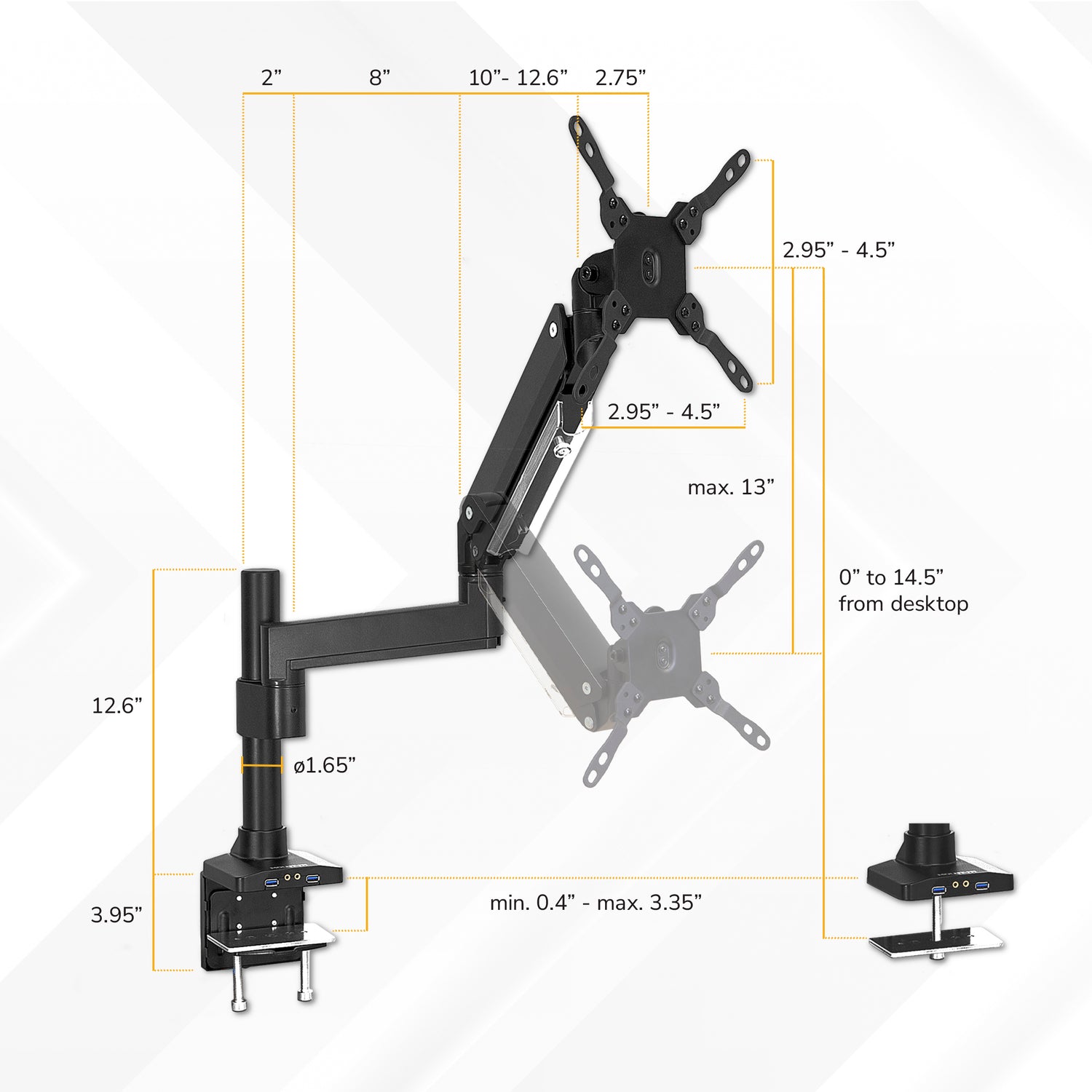 Heavy Duty Monitor Desk Mount w/ USB & Multimedia Ports