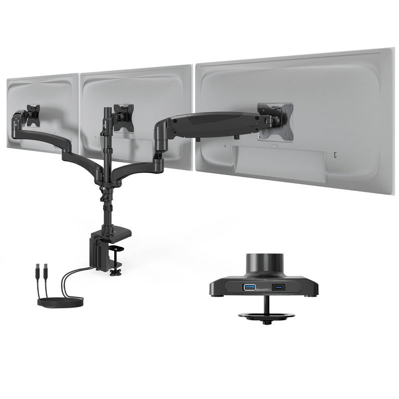 Triple Monitor Mount with Gas Spring Arms and USB Ports